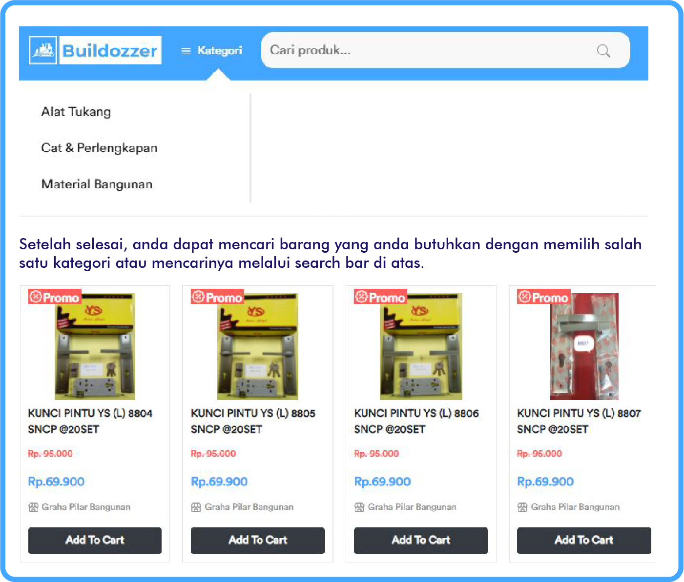 Berikut panduan pembelian pada Cara berbelanja di Buildozzer: